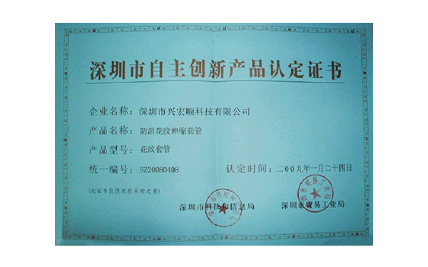深圳市自主創(chuàng)新產(chǎn)品認(rèn)定證書