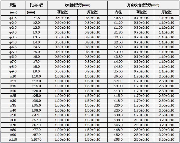 3、收縮溫度:150℃~175℃